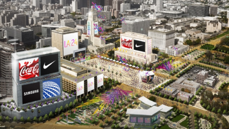 An artist's rendering of downtown লস এঞ্জেলেস ২০২৪ সামার অলিম্পিক গেমস (Credit: LA24)
