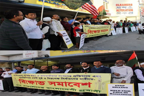 বাংলাদেশের গণতন্ত্র হত্যা, বাক-স্বাধীনতা হরণ, মানবাধিকার লংঘন, চলমান রাজনৈতিক অস্হিরতার প্রতিবাদে এবং অবৈধ স্বৈরাচারী সরকারের পদত্যাগ ও দ্রুত সংলাপের মাধ্যমে সকল দলের অংশগ্রহণে নিরপেক্ষ নির্বাচনের দাবীসহ বিভিন্ন ইস্যু নিয়ে "লস এঞ্জেলেসের বাংলাদেশী প্রবাসী" ব্যানরে বিক্ষোভ করেছেন প্রবাসী বাংলাদেশীরা। গত ১৮ই জানুয়ারি, রবিবার বিকালে লস এঞ্জেলেসের 'লিটিল বাংলাদেশ' এলাকায় এ সমাবেশে স্হানীয় বিএনপি ও ২০দলীয় জোটের নেতা-কর্মী-সমর্থকদের আধিক্য থাকলেও বিক্ষোভে যোগ দিয়েছেন কম্যূনিটির বিভিন্ন সংগঠনের বিশিষ্ট নেতা, ব্যাক্তিবর্গ ও সাধারণ নাগরিকগণ। নির্ধারিত সময় বেলা ৩টার কিছুটা আগে থেকেই কম্যূনিটির মানুষজন অনুষ্ঠানস্হলে এসে জড়ো হতে শুরু করেন। ইংরেজি ও বাংলায় বিভিন্ন প্ল্যাকার্ড, ফেস্টুন ও ব্যানার নিয়ে শান্তিপূর্ণ এই বিক্ষোভ সমাবেশ চলাকালে রাস্তার অনেক যানবাহনকেই 'হর্ণ' বাজিয়ে বিক্ষোভের প্রতি সমর্থন প্রকাশ করতে দেখা গেছে। মূহুর্মুহু স্লোগানে উত্তাল ছিল 'লিটিল বাংলাদেশ' এলাকা।"লস এঞ্জেলেসের বাংলাদেশী প্রবাসী" ব্যানারে আয়োজিত এই বিক্ষোভ সমাবেশের সভাপতিত্ব করেন ক্যালিফোর্নিয়া বিএনপি'র সভাপতি মো. আ. বাছিত। প্রবাসীদের নিয়ে আয়োজিত এ বিক্ষোভ সমাবেশে বক্তব্য রাখেন ড.মাহবুব খান, নজরুল ইসলাম চৌধুরী কাঞ্চন, ডাব্লিউ আমিন, মুর্শেদুল ইসলাম, বদরুল আলম চৌধুরী শিপলু, সামসুজ্জোহা বাবলু, এম ওয়াহিদ রহমান, আশরাফ হোসেন আকবর, ফারুক হাওলাদার, লায়েক আহমেদ, সৈয়দ নাসিরউদ্দিন জেবুল, মারুফ খান, আনিস আহমেদ, ফয়সাল আহমেদ তুহিন, লিংকন চৌধুরী, মুশফিক খসরু, মো. চপল, শাহাদাত শাহীন, লোকমান হোসেন, মো. মুকুল। এছাড়া সমাবেশে বক্তব্য না রাখলেও বিক্ষোভে উপস্হিত ছিলেন প্রফেসর আলী আকবর, আহমেদ কবির, কম্যূনিটির মেয়র অফিসের কমিশনার মারুফ ইসলাম, বিশিষ্ট সাংবাদিক আবদুস সামাদ প্রমুখ।সভাপতির বক্তব্যে মো.বাছিত বলেন, ইট-বালির ট্রাক আর তালা দিয়ে আজ বাংলাদেশের গণতন্ত্রকে অবরুদ্ধ করা হয়েছে, সবাইকে সভা-সমাবেশ করতে দিতে হবে। অবৈধ শেখ হাসিনার বিদায় না হওয়া পর্যন্ত জনগণের আন্দোলন চলবে। অবিলম্বে নিরপেক্ষ ও সকল দলের অংশগ্রহণে নির্বাচন দিতে হবে। দেশনেত্রী বেগম খালেদা জিয়ার নেতৃত্বে শান্তিপূর্ণ ও গণতান্ত্রিক আন্দোলনের মাধ্যমেই বাংলাদেশের মানুষের ভোট ও ভাতের অধিকার ও জীবনের নিরাপত্তা ফিরে আসবে এবং প্রতিষ্ঠিত হবে জনগণের সরকার। এছাড়াও মো.বাছিত আগামী ২৩শে জানুয়ারি শুক্রবার, জুম্মার নামাযের পর সবাইকে বাংলাদেশের কনসুলেট আফিসে প্রবাসীদের পক্ষ থেকে 'স্মারকলিপি' দেয়ার সময় আসার জন্য আহবান জানান। 'পরদেশ/বাংলাবাজার' থেকে মিছিল নিয়ে 'স্বদেশ চত্তরে' এসে সমাবেশ সফল করার জন