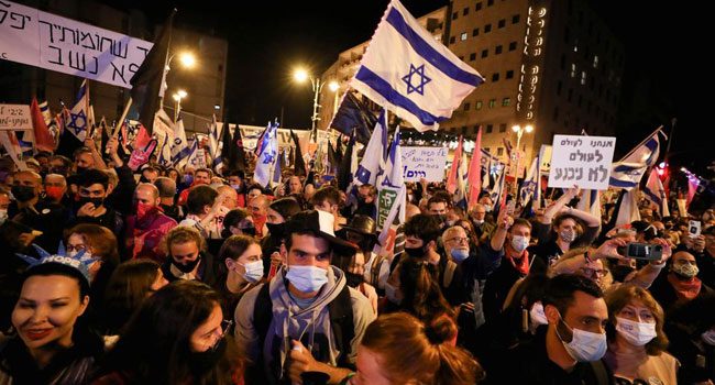 ইসরাইলে চলমান রাজনৈতিক অস্থিরতায় গত মাসে দেশটিতে সাধারণ নির্বাচন অনুষ্ঠানের পর আবার নতুন করে প্রধানমন্ত্রী বেনিয়ামিন নেতানিয়াহুর বিরোধী বিক্ষোভ শুরু হয়েছে। শনিবার জেরুসালেমে নেতানিয়াহুর বিরুদ্ধে অনুষ্ঠিত বিক্ষোভে শত শত ইসরাইলি নাগরিক সমবেত হন।