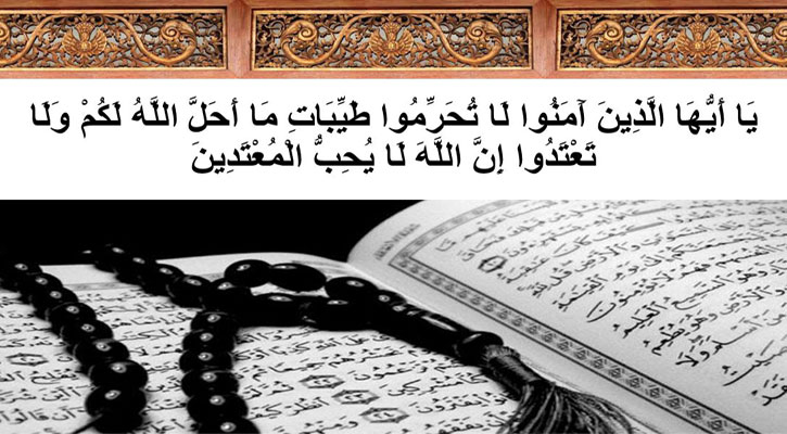 কুরআনে সুরা মায়েদার ৮৭ নম্বর আয়াতে বলা হয়েছে, ‘হে মুমিনগণ! তোমরা ওই সব সুস্বাদু বস্তু হারাম করো না, যেগুলো আল্লাহ তোমাদের জন্যে হালাল করেছেন এবং সীমা অতিক্রম করো না। নিশ্চয়ই আল্লাহ সীমা অতিক্রমকারীদেরকে পছন্দ করেন না।