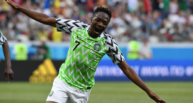 নাইজেরিয়ার হয়ে মুসাই প্রথম খেলোয়াড় যিনি বিশ্বকাপে এক ম্যাচে জোড়া গোল করলেন। তবে পাঠক, সেটি শুক্রবারের ম্যাচে নয়। ২০১৪ সালে গ্রুপ পর্বের ম্যাচে আর্জেন্টিনার বিরুদ্ধে জোড়া গোল করেছিলেন মুসা। সেই ম্যাচেই বিশ্ব ফুটবল চিনেছিলো মুসা নামে এক ফুটবলারকে। তখন মুসার বয়স ছিলো মাত্র ২১ বছর। সেই ম্যাচে আর্জেন্টিনার হয়ে মেসির জোড়া গোলের গোলের জবাবে জোড়া গোল করেছিলেন আহমদ মুসা। ৩ মিনিটে মেসি গোল করে এগিয়ে দেন আর্জেন্টিনাকে। চতুর্থ মিনিটে গোল শোধ করেন মুসা। আবার প্রথমার্ধের ইনজুরি টাইমে(৪৫+১) মেসির গোলের জবাবে পরের মিনিটেই(৪৫+২) গোল করেছিলেন মুসা। অবশ্য দ্বিতীয়ার্ধে মার্কোস রোহোর গোলে জয় তুলে নিয়েছিলো মেসিদের দল।