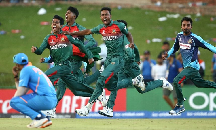 দক্ষিণ আফ্রিকায় অনূর্ধ্ব-১৯ ক্রিকেট বিশ্বকাপ জয়ের মধ্য দিয়ে বিশ্বকাপজয়ীদের তালিকায় নাম লেখালো বাংলাদেশ। রবিবার যুব বিশ্বকাপের ফাইনাল ম্যাচে বাংলাদেশের কাছে হেরে অখেলোয়াড়সুলভ আচরণ করলেন ভারতের যুব ক্রিকেটাররা। শুধু তাই নয়, ভারতীয় ক্রিকেটারদের সঙ্গে হাতাহাতি এমনকী বাংলাদেশের জাতীয় পতাকা কেড়ে নেওয়ার ঘটনাও ঘটেছে।