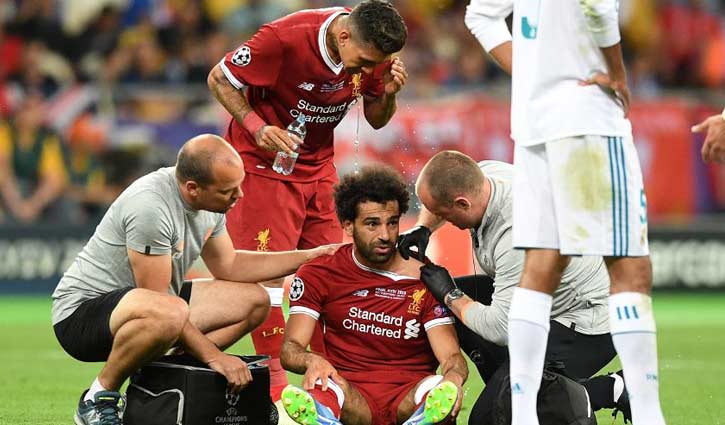 রিয়াল মাদ্রিদের বিপক্ষে উয়েফা চ্যাম্পিয়নস লিগের ফাইনালে ইনজুরিতে পড়েছেন মোহাম্মদ সালাহ। ম্যাচের ২৯ মিনিটে রিয়ালের অধিনায়ক সার্জিও রামোসের কড়া ট্যাকেলে বাম হাতের ইনজুরি নিয়ে কাঁদতে কাঁদতে মাঠ ছাড়েন তিনি। ড্রেসিং রুমে গিয়ে প্রাথমিক চিকিৎসা নিয়ে স্টেডিয়ামই ছেড়ে যান। ফাইনাল শেষে লিভারপুলের কোচ জার্গেন ক্লপ জানিয়েছেন সালাহর ইনজুরি মারাত্মক। সেরে উঠতে তিনমাস সময় লাগতে পারে। কিন্তু মিশরের ফুটবল সংস্থা জানাচ্ছে ভিন্ন কিছু। তারা সালাহর বিশ্বকাপে খেলা নিয়ে আশাবাদী।