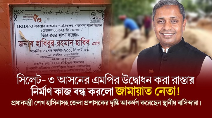 সিলেট- ৩ আসনের এমপির উদ্বোধন করা রাস্তার নির্মাণ কাজ বন্ধ করলো জামায়াত নেতা!