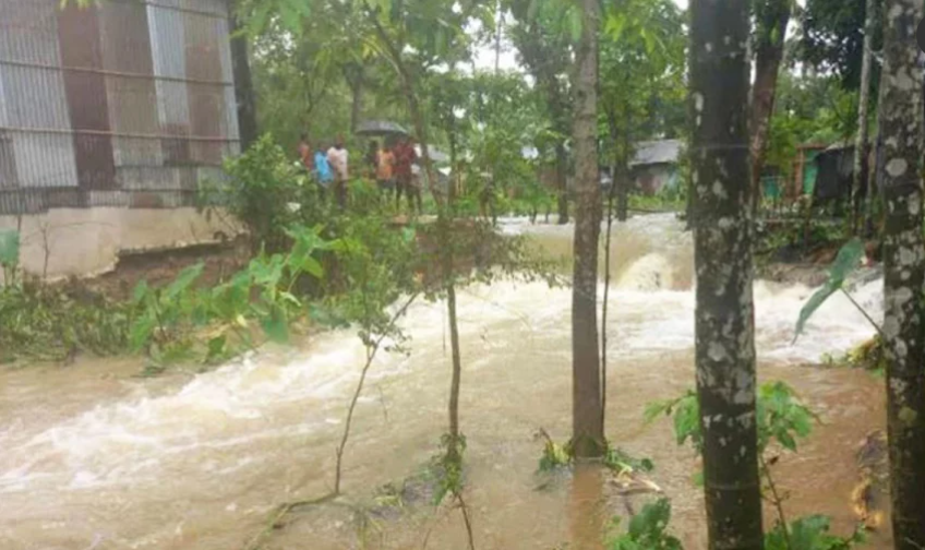 মৌলভীবাজার কুশিয়ারার পানি উপচে প্রতিরক্ষা বাঁধ ভেঙে জনপদে প্রবেশ
