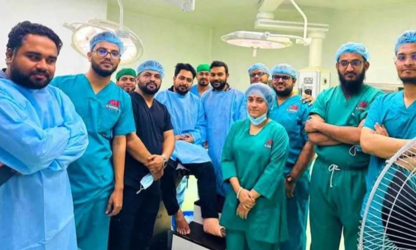 পায়ে আঘাত পেয়ে সিলেটের হাসাপাতালে চিকিৎসা নিয়েছেন নাহিদ ইসলাম
